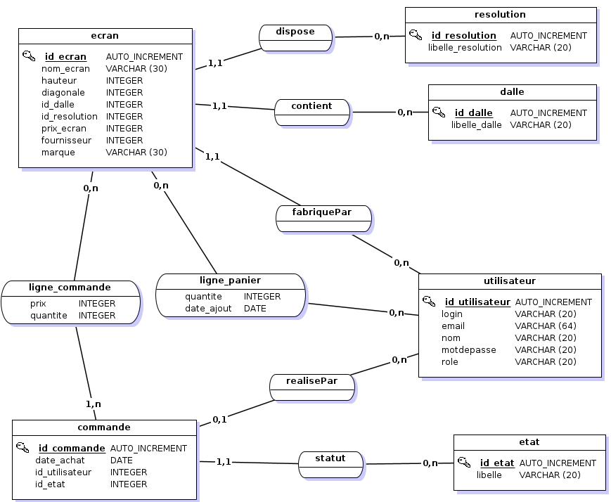 La base de données modélise un site de vente en ligne spécialisé dans les écrans